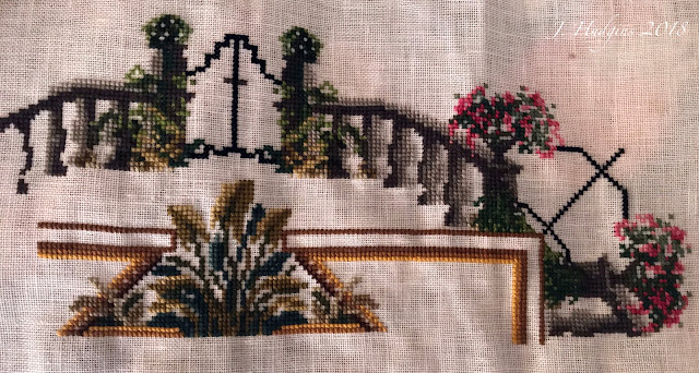 One problem I am having with this pattern is I am going in a circle around the center. However, if you leave the pattern upright then the symbols are turned. So I have to turn the page to match the direction I am stitching. It's a bit confusing for me at times, but then that's me.